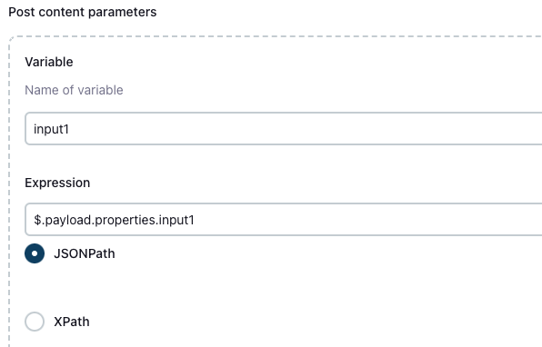After checking the box, look for the Post content parameters section. This is where you will define the variables which will be passed to your pipeline run.