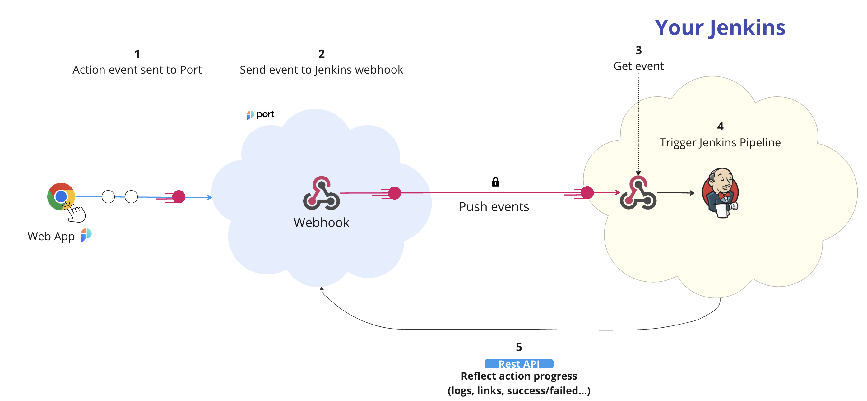 POSTrequest with the action payload to the Jenkins webhookURL. - The Jenkins webhook receives the new action request.