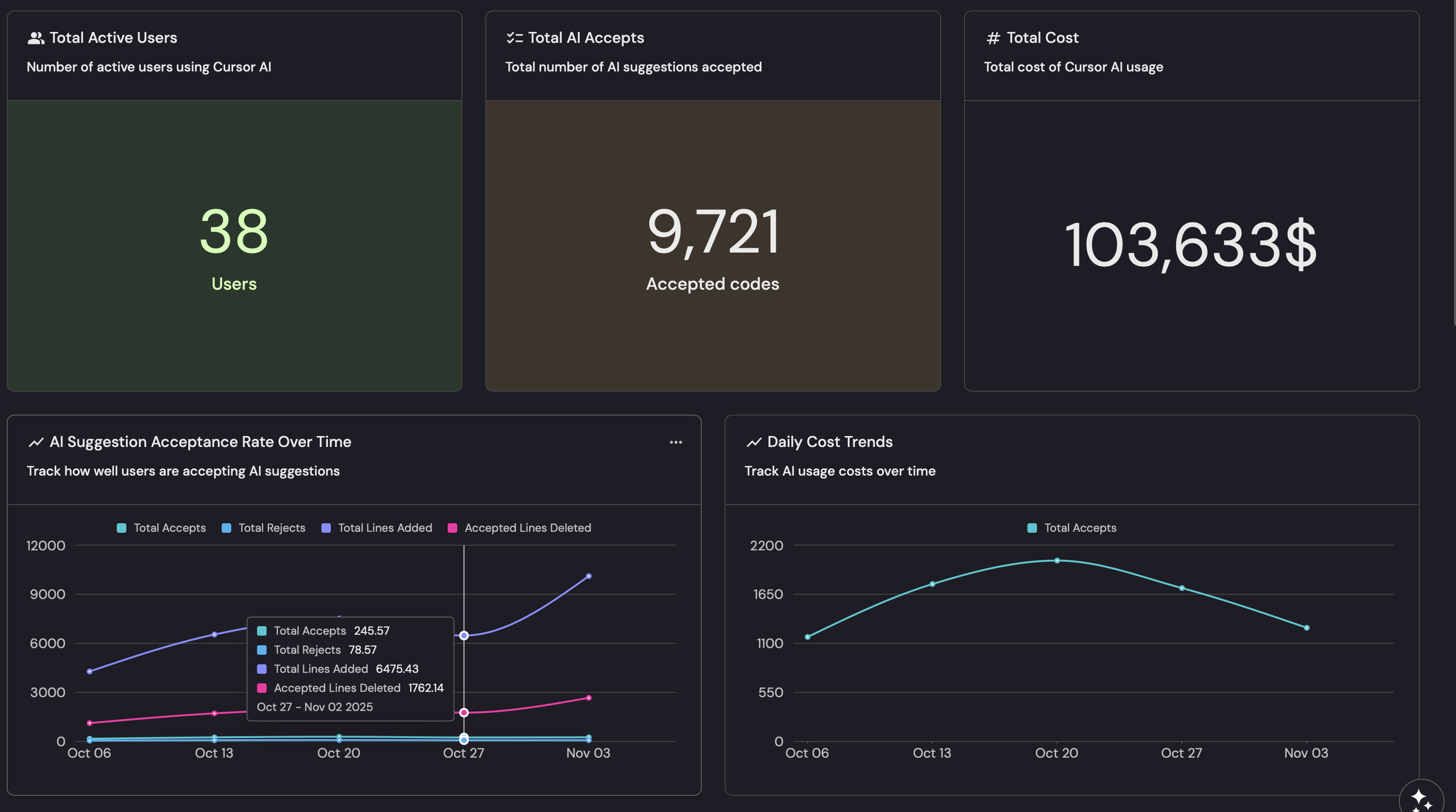 Track how well users are accepting AI suggestions. -