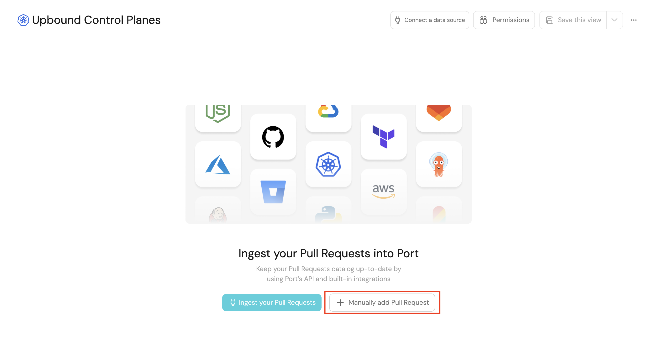 2. Click the Manually add Upbound Control Plane button (or the + Upbound Control plane at the top right of the page).
