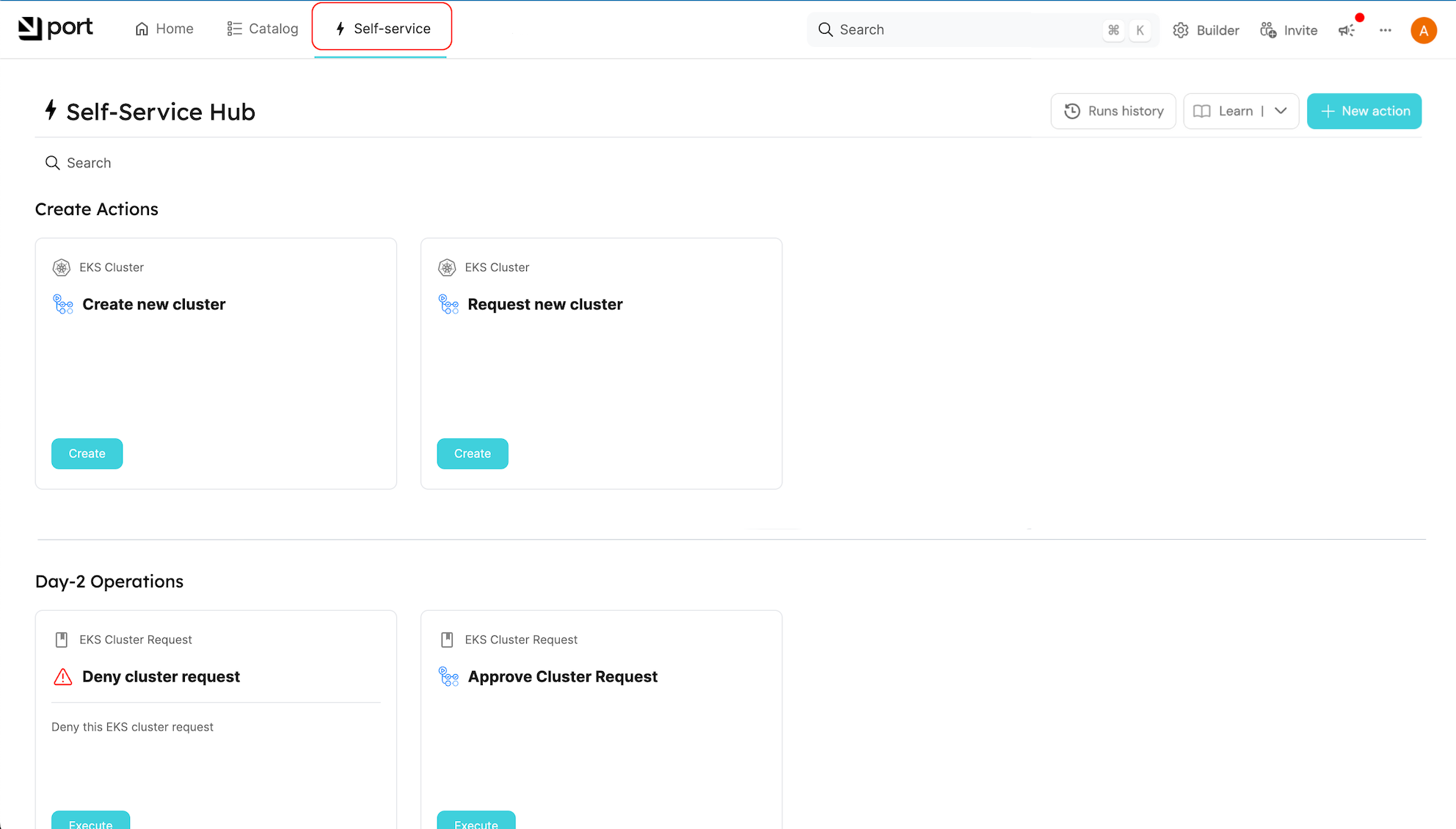 At this point, everything should be set up. Browse to your Self-service page to view the different actions you defined in Port, and try them out