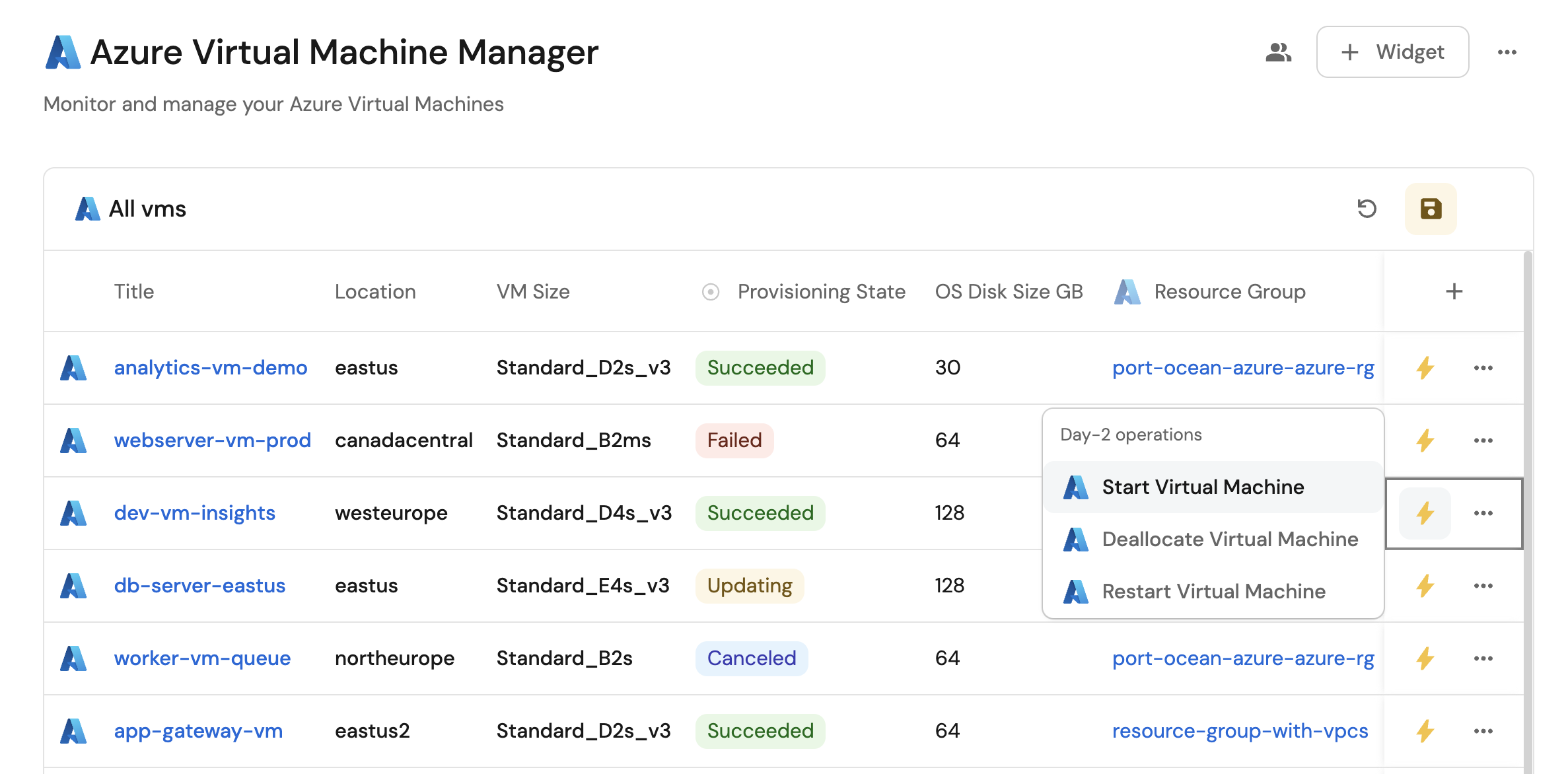 This guide demonstrates how to bring your Azure Virtual Machine management experience into Port. You will learn how to: