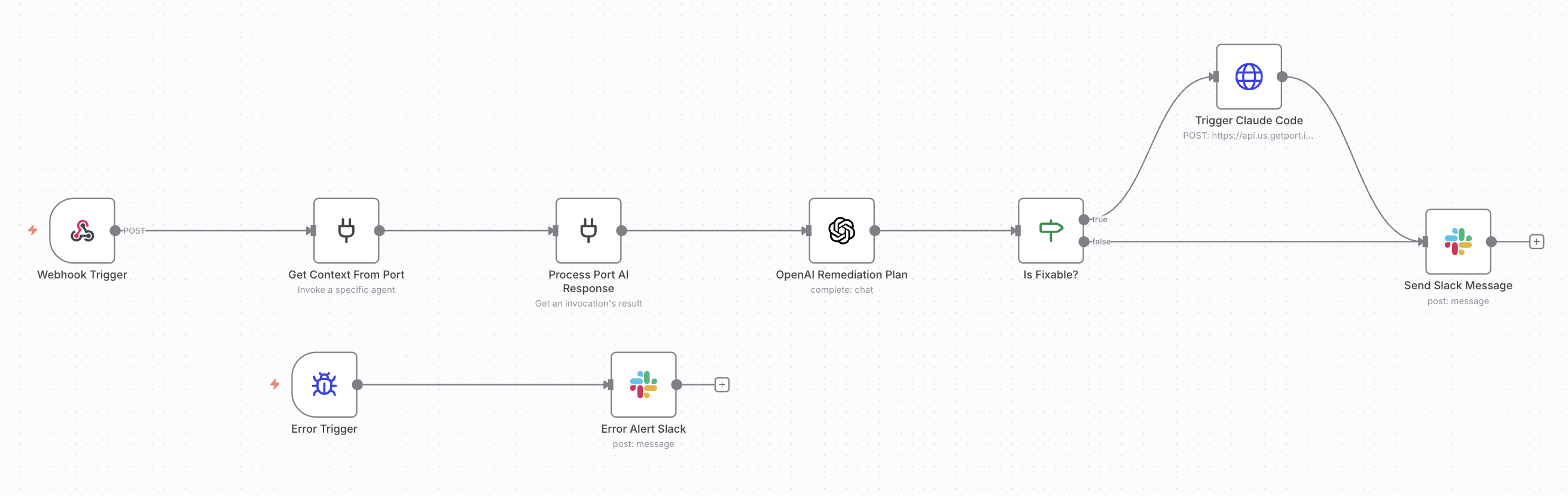 - Trigger Claude Code โ (Optional) Triggers automated code fix via Port action