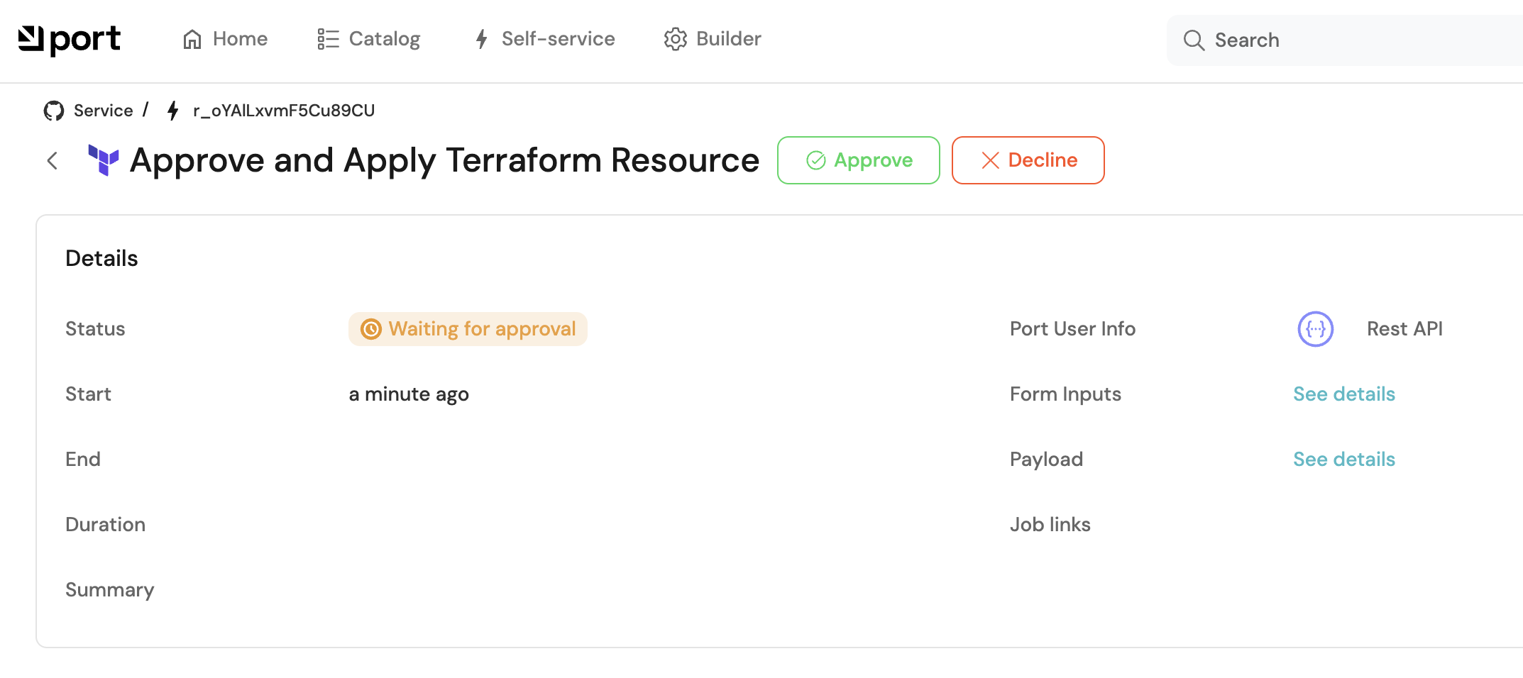 This guide, demonstrates how to create two self-service actions in Port to plan and apply a cloud resource such as s3 bucket using Terraform in a GitHub workflow.