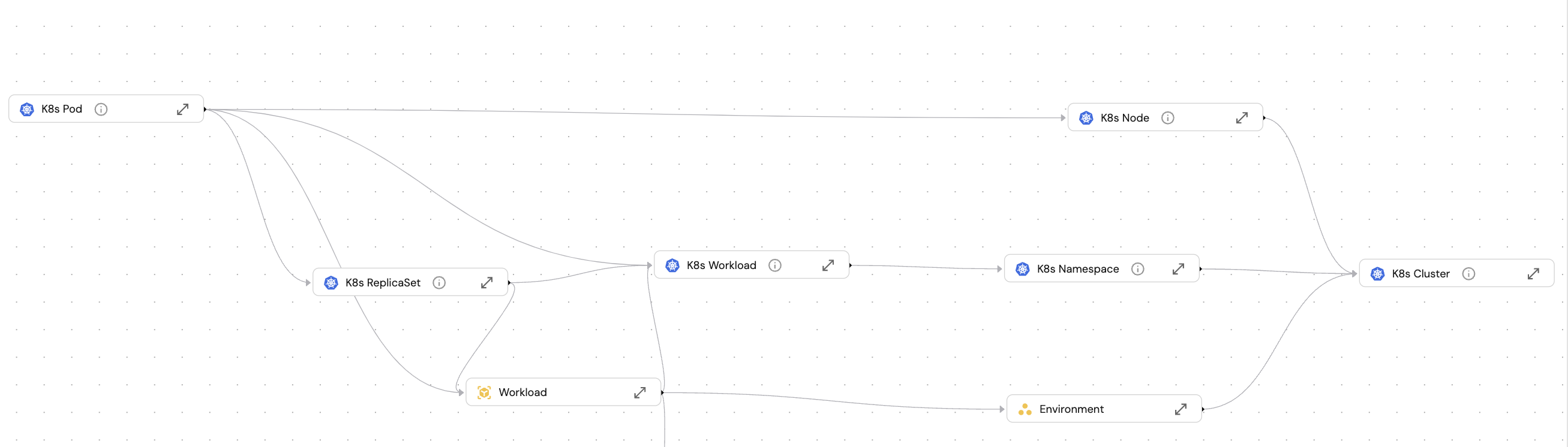 After installing the integration, the relationship between the Workload blueprint and the k8_workload blueprint is established automatically. To ensure each Workload entity is properly related to its respective k8_workload entity, we will configure automatic discovery using labels.