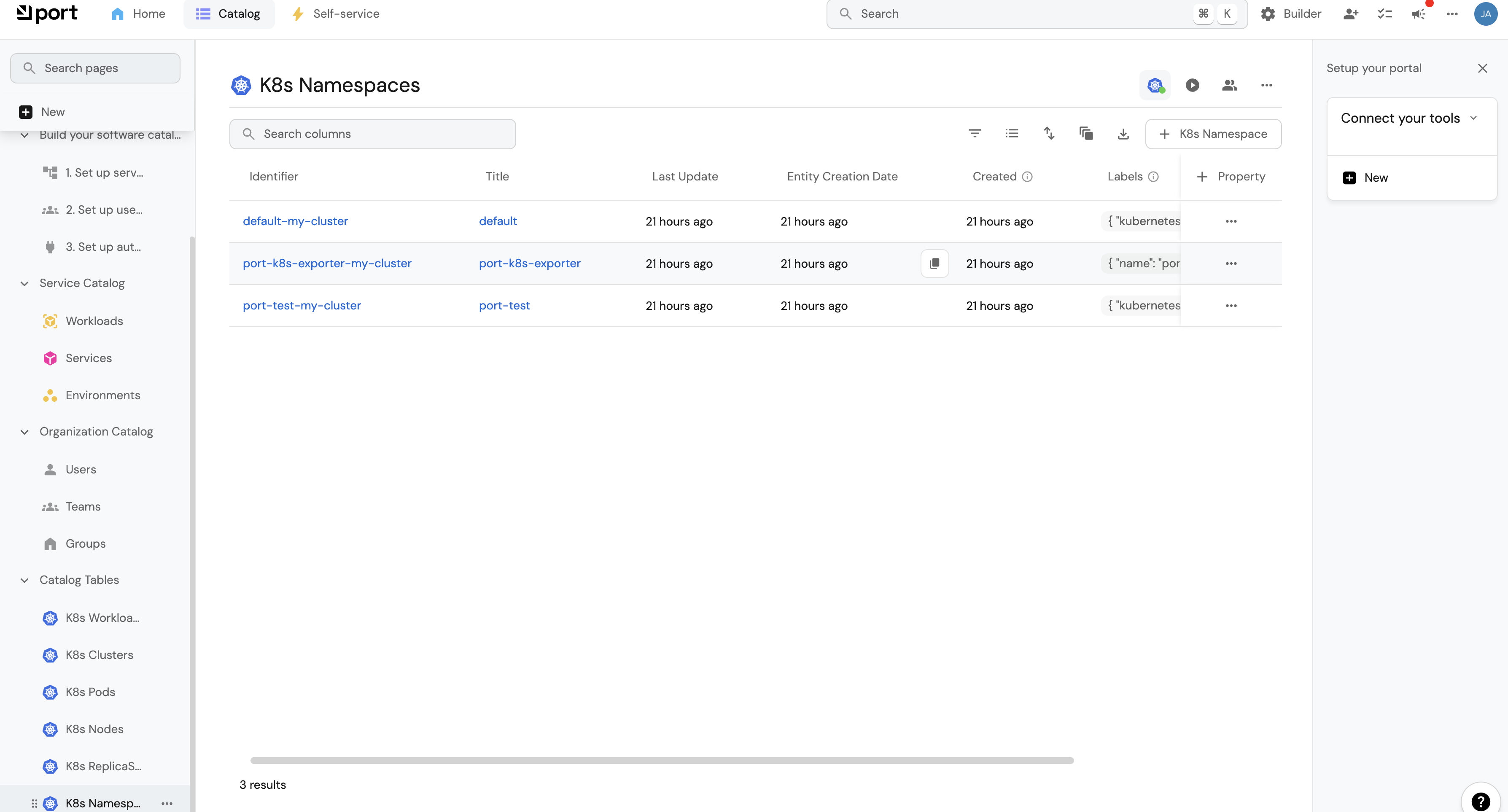 Port’s Kubernetes integration helps you model and visualize your cluster’s workloads alongside your existing workloads in Port. This guide will help you set up the integration and visualize your services' Kubernetes runtime.