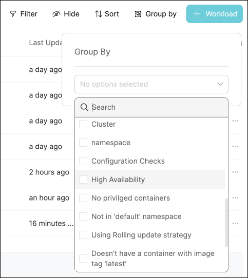 2. Click on the Group by button, then choose High availability from the dropdown: