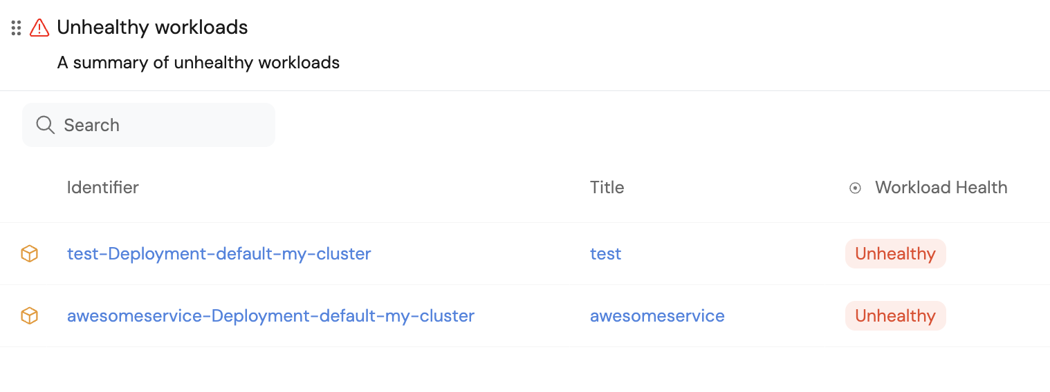 Add an "Unhealthy services" table to your homepage​