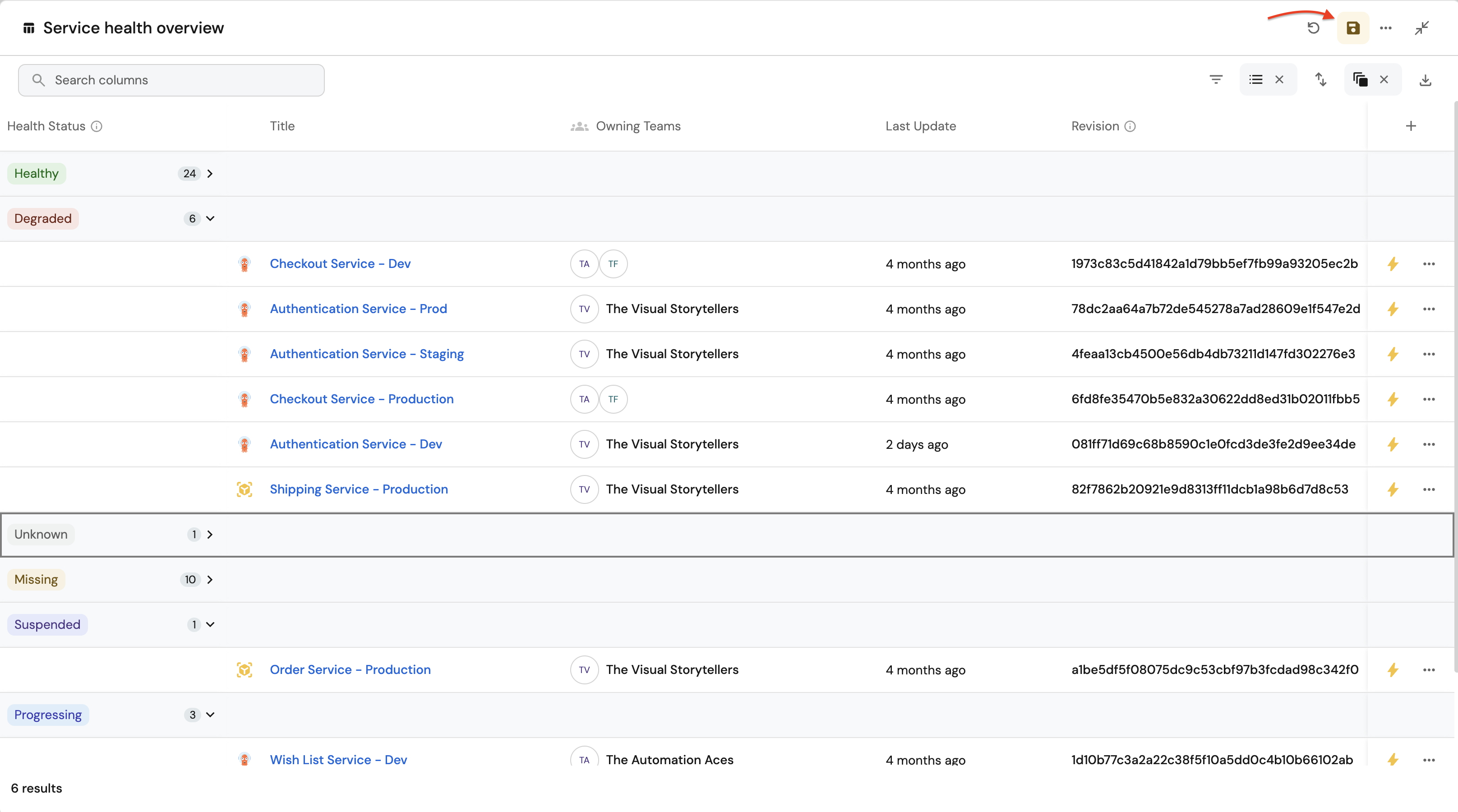7. Click on the Group by any Column icon and select Health Status.